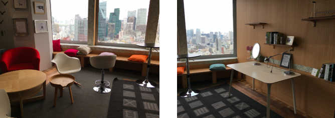 ラウンジにはイスとテーブルがいくつか置かれていたり、カウンターがあったり、床に座れるスペースがあったりと、ゆったりとした落ち着ける空間になっています。