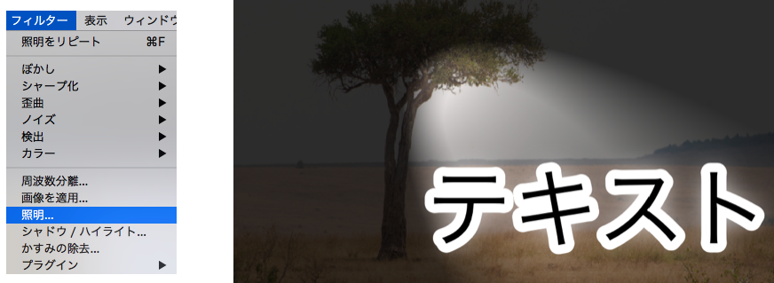 - 「フィルター」>「照明」をクリック