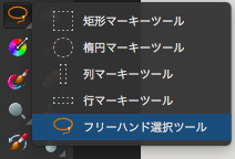 - モザイクをつける部分の形に合った選択ツールを選び画像上で範囲を選択