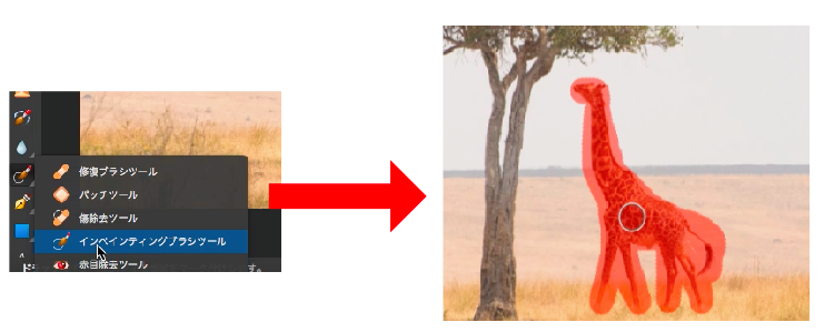 上の画像のように、左から「ペインティングブラシツール」を選択し、画像のいらない部分をなぞります。