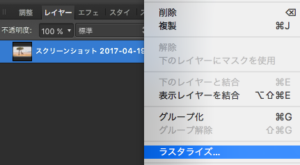 画面右の「レイヤー」から編集する画像の上で右クリックし「ラスタライズ」をクリックしましょう。