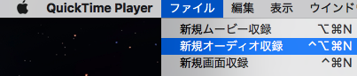 2. 次にQuickTime Playerを起動し、「ファイル」>「新規オーディオ収録」をクリックします。