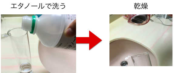 瓶を洗ってよく乾燥させ、エタノールで殺菌して乾燥する