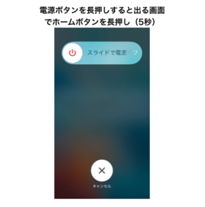 電源ボタンを長押しすると出る画面で、ホームボタンを長押し(5秒)して下さい。
