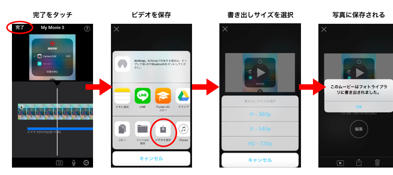 すると録画が停止され、iPhone本体の写真に保存されます。